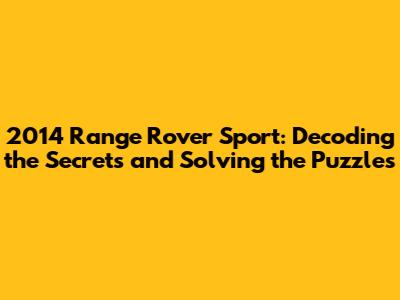2014 Range Rover Sport: A Comprehensive Guide