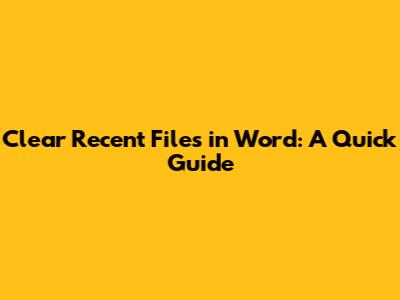 Clear Recent Files In Word: A Quick Guide