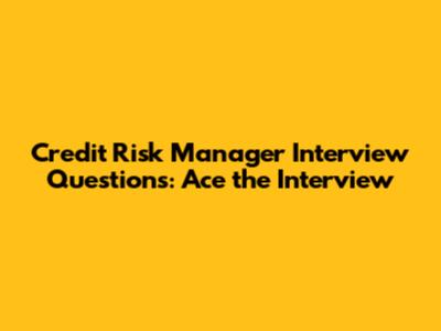 Credit Risk Manager Interview Questions: Ace The Interview
