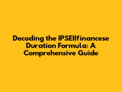 Unveiling the IPSEIIfinancese Duration Formula