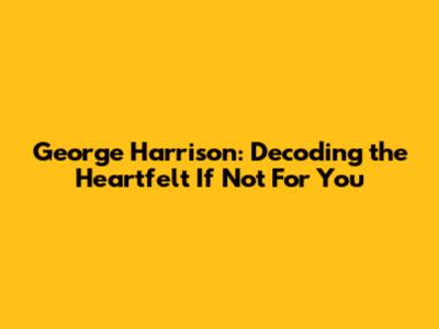 George Harrison: 'If Not For You' Song Meaning & Impact