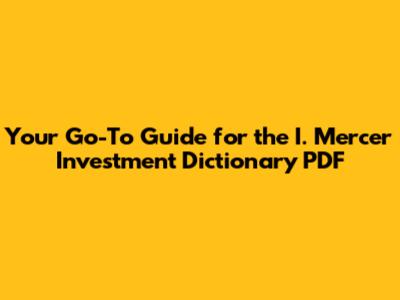 Why You Absolutely Need the I. Mercer Investment Dictionary PDF