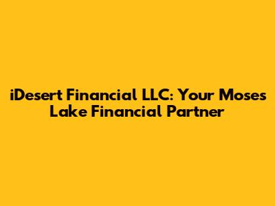 Hey guys, let's dive into the world of iDesert Financial LLC and see how they can be your financial wingman in Moses Lake! We're talking about a company that aims to help you navigate the often-confusing waters of finance, whether you're saving for a rainy day, planning your retirement, or dreaming about a new home. iDesert Financial LLC is all about offering a range of financial services tailored to your specific needs right here in Moses Lake. They get that everyone's financial journey is unique, so they offer personalized plans to help you achieve your goals. This article will break down what iDesert Financial LLC is all about, the services they provide, and why they might be the perfect fit for you. Buckle up, and let's get started!