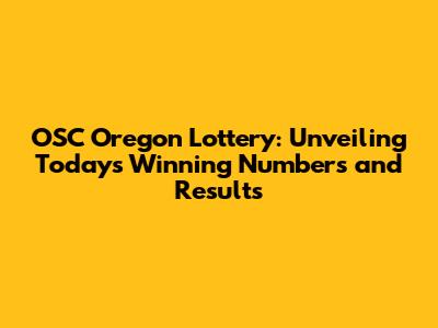OSC Oregon Lottery: Winning Numbers & Results Today