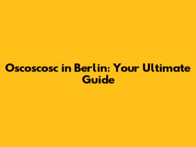 Hey guys! Ever heard of Oscoscosc? Maybe not! But if you're planning a trip to Berlin, stick around because this guide is going to be epic. We're diving deep into what Oscoscosc is all about and how you can make the most of it in the vibrant city of Berlin. Get ready to explore!