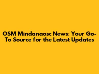 OSM Mindanaosc News: Latest Updates & Stories
