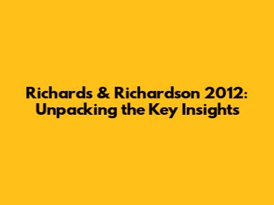 Hey guys! Ever stumble upon a research paper that just makes you think, "Wow, this is really insightful?" Well, Richards & Richardson's work from 2012 might just be one of those for you. Let's dive deep into what makes this study tick and why it's still relevant today. We're going to break down the core concepts, look at the implications, and figure out how you can apply these insights in the real world. Buckle up; itβs going to be a fun ride!