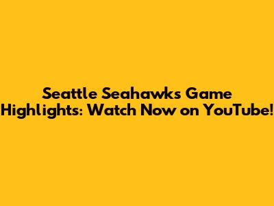 Seahawks Game Highlights: Watch Now On YouTube!