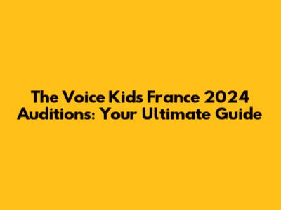 The Voice Kids France 2024 Auditions: Your Ultimate Guide