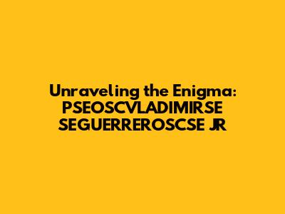 Unraveling The Mystery: PSEOSCVLADIMIRSE SEGUERREROSCSE JR