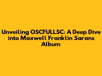 Unveiling OSCFULLSC: A Deep Dive Into Maxwell Franklin Saran's Album